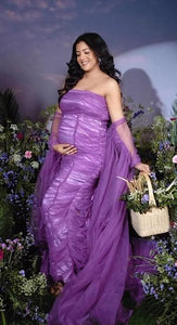 G41 (5), Purple Maternity Shoot Trail Baby Shower Lycra Body Fit Gown, All Size