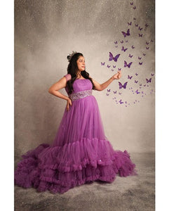 G240 (2), Luxury Purple Ruffled maternity shoot trail gown, Size - (XS-30 to XL-40)