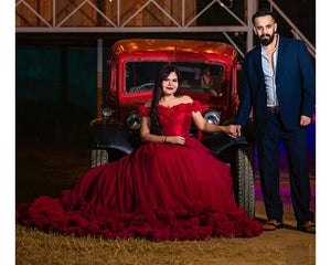 G123, Luxury Wine Puffy Cloud Trail Big Ball Gown, Size (XS-30 to L-38)