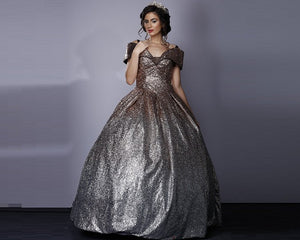 G136, Luxury Gold And Silver Princess Evening Ball Gown, Size (XS-30 to L-38)