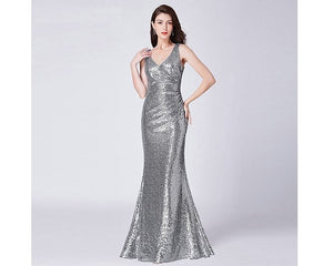 G154, Silver V Neck Mermaid Cocktail Evening Gown, Size (XS-30 to L-36)