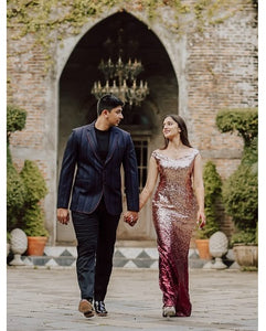 G157, Golden Copper Magenta Mermaid Cocktail Evening Gown, Size (XS-30 to L-36),