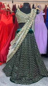 L41, Green Embroidery Wavy Lehenga ,size,(38-40)