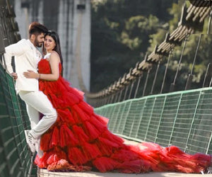 G4040 , Red Ruffle Long Trail Shoot Gown, Size (All)p