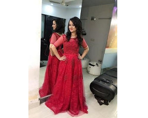 G105, Wine Shimmer Gown (Sleeves available), Size (XS-30 to XXXL-46)