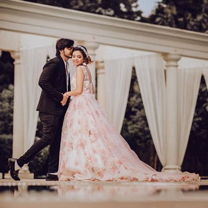 G210 (7), Light Pink Floral Ball Gown with Trail, Size (XS-30 to 4XL -48)