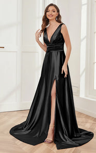 G904 (2), Black satin slit cut PreWedding Shoot Long Trail Gown, Size (All)
