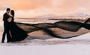 G100(12), Black Long Trail Prewedding Shoot Gown, Size (All)