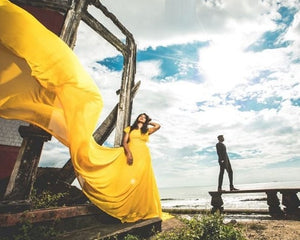 G178 (2), Yellow Prewedding Shoot Infinity Long Trail Gown Size (All)