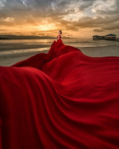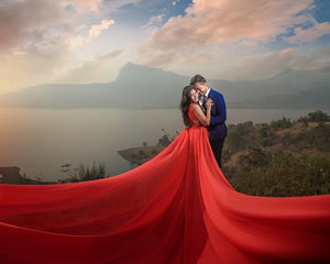 G186, Red Prewedding Shoot Infinity Long Trail Gown Size ( XS-30 To L 38 )