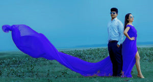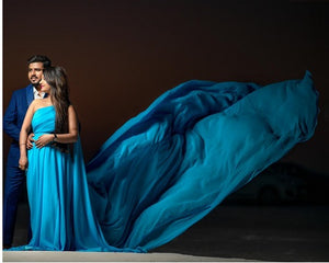 G302, Royal Blue Slit Cut Long Trail Prewedding Shoot Gown Size(All)