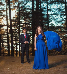 G275(2) ,Blue One Shoulder Prewedding Flair Gown, Size(All)