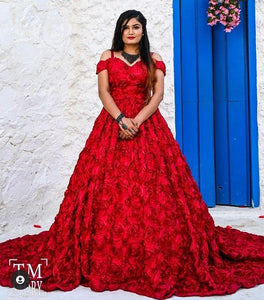 G537, Luxury Red Flower Prom PreWedding trail Gowns, Size (XS-30 to L-38)