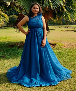 G319 (3), Blue One Shoulder Prewedding Shoot Gown, Size (All)