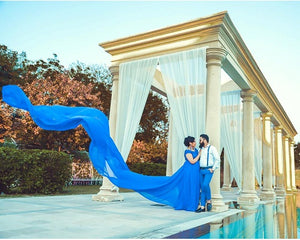 G300 (12), Royal Blue prewedding top lace work georgette long trail Gown, Size(All)