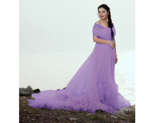 G77(7), Lavender Frilled Prewedding Shoot Trail Gown, Size (All)