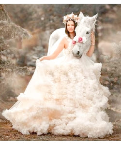 W558, White Ruffled Prewedding Shoot Trail Gown Size, (All)