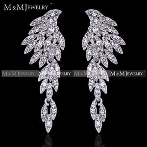 Eagle Silver Crystal Bridal Drop Long Earrings with Stones