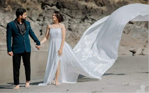 W224 (4), White Tube Lace Top Georgette Long Trail Prewedding Shoot Gown, Size - (All)
