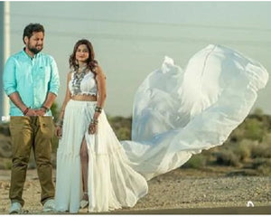 W424, White Crop Top Slit Cut Trail Skirt Pre Wedding Shoot Gown, Size(All)