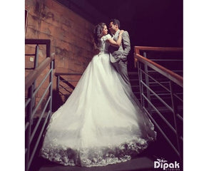 W172, White Lace Full Sleeves Prewedding Trail Ball Gown, Size (XS-30 to XL-40)
