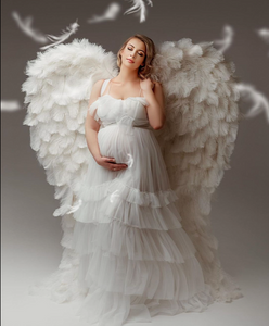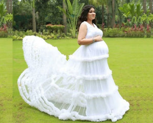 W548, White Puffy Maternity Shoot  Baby Shower Trail Gown Size (All Sizes) pp
